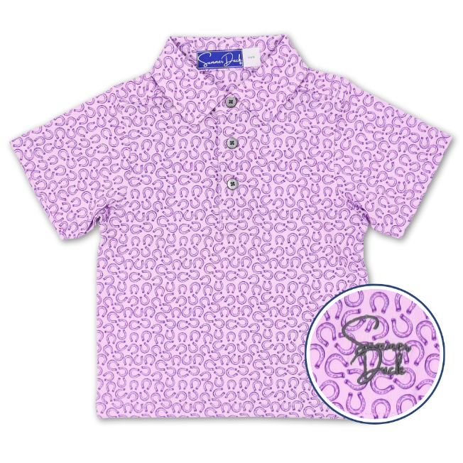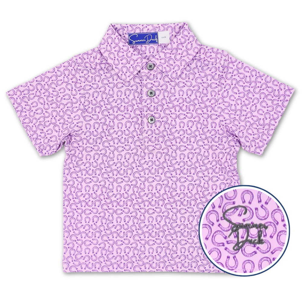 Let your little one match in effortless style and comfort with The Cowtown Kid’s Performance Polo—designed for active days, family outings, and bonding moments with Dad. Made from the same high-quality 88% polyester / 12% spandex blend as the men’s version, this soft purple polo is built for all-day comfort, featuring a purple horseshoe design, grey buttons, and the SUMMER DUCK logo on the center back.