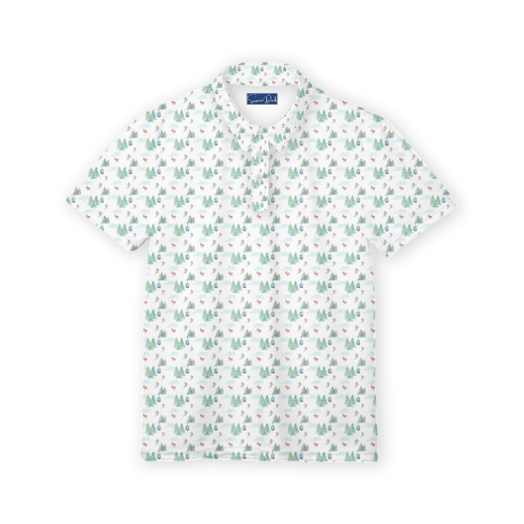 Bring winter vibes to your wardrobe with The Slopes Polo. Featuring a crisp white base with a playful winter skiing design, this polo combines fun seasonal style with all-day comfort. Whether you're hitting the course, heading to the lodge, or just enjoying a casual outing, it's a look that's both sharp and unique.