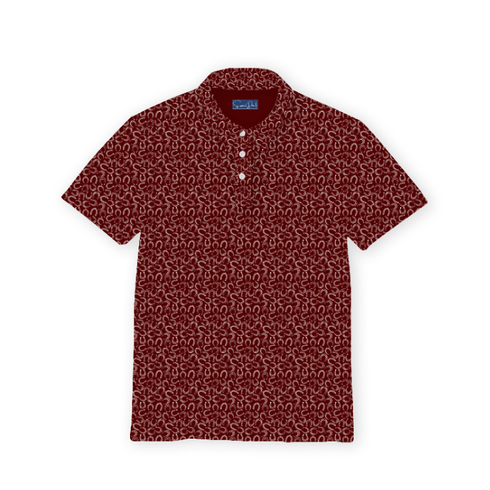 Classic style meets bold detail with The Station Polo. Designed in a deep maroon base patterned with white horseshoes, this polo brings a touch of good luck and standout style to your everyday look. Lightweight and breathable, it's perfect for long days on the course, casual weekends, or evenings out.